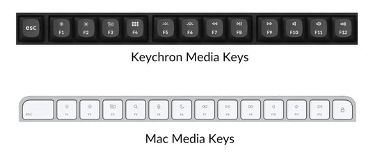 Keychron is one of the few mechanical keyboards that features macOS media keys (F1 to F12) in a Mac layout with the same as conventional Mac systems.